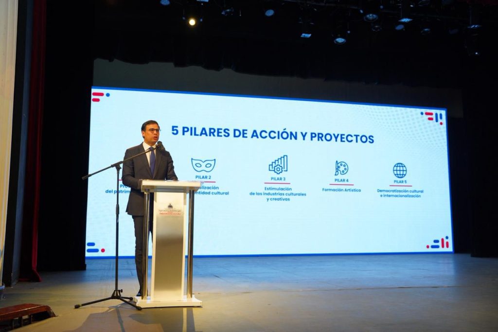 La gestión, prosiguió Salcedo, se articula sobre cinco pilares: la protección del patrimonio cultural, la revitalización de la identidad cultural, el impulso a las industrias culturales y creativas, la formación artística y descentralización territorial, y la internacionalización.
