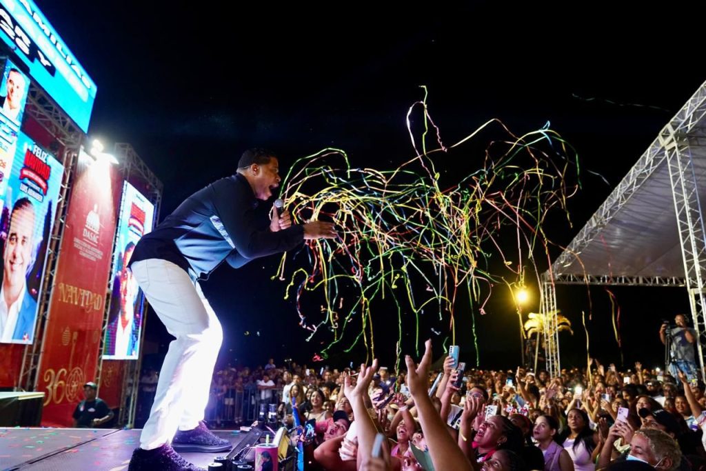 Santo Domingo Este. – El merenguero Jandy Ventura llenó de energía y tradición el lanzamiento del programa Navidad 360, una iniciativa de la Dirección de Asistencia Social y Alimentación Comunitaria (DASAC), durante un evento celebrado en el emblemático Faro a Colón con la presencia del presidente Luis Abinader.