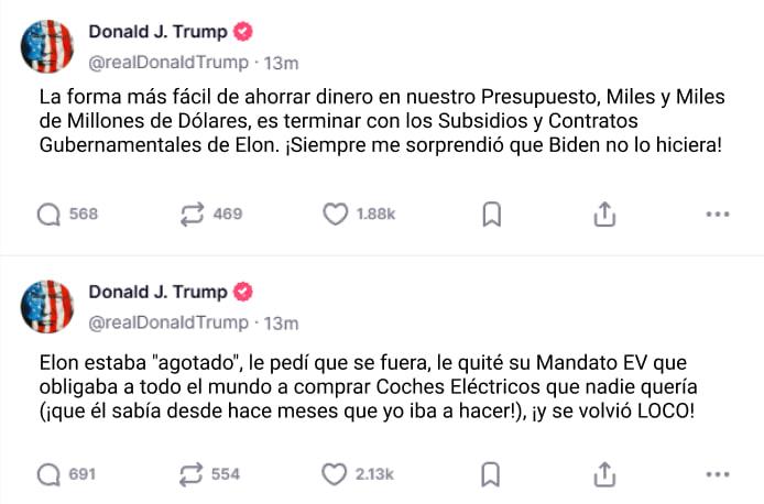 Sumado a esto, Trump amenazó los subsidios de Musk, al decir que recortaría contratos federales a sus empresas.