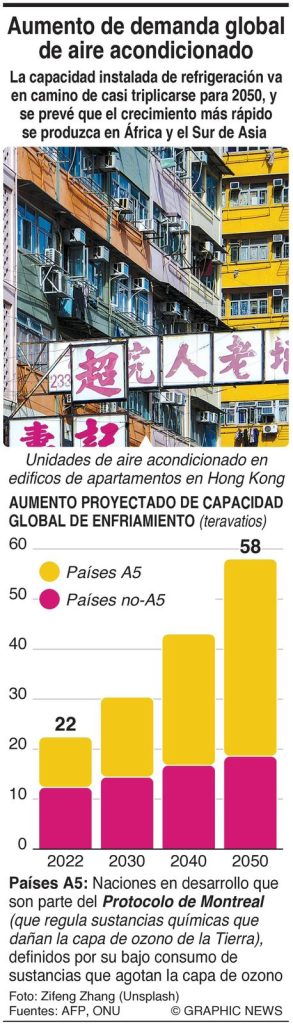 La capacidad instalada de refrigeración va en camino de casi triplicarse para 2050, y se prevé que el crecimiento más rápido se produzca en África y el Sur de Asia.