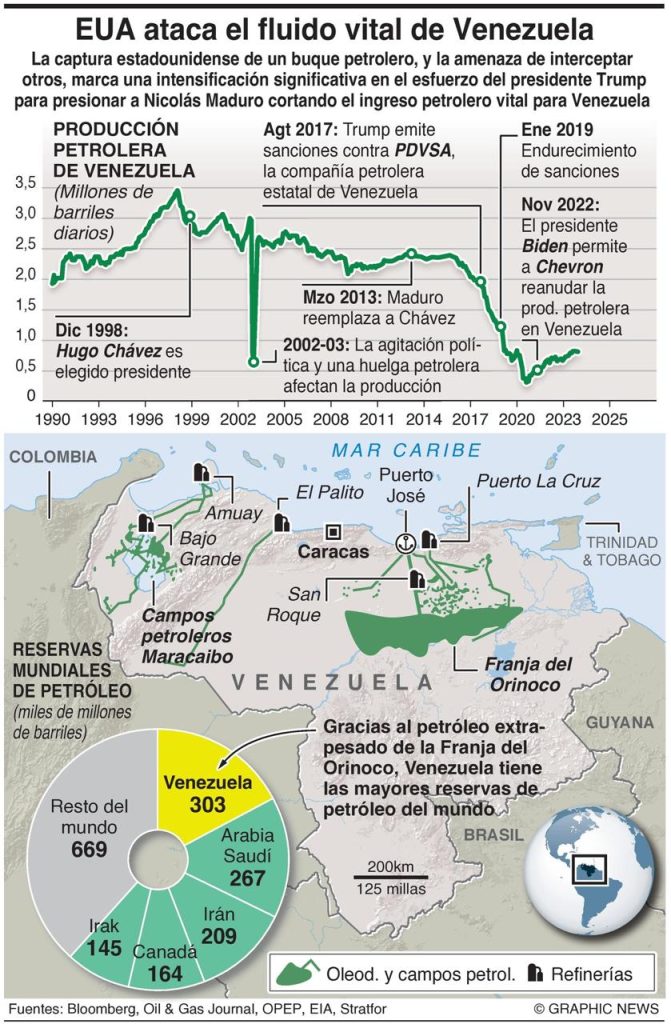 La captura estadounidense de un buque petrolero, y la amenaza de interceptar otros, marca una intensificación significativa en el esfuerzo del presidente Trump para presionar a Nicolás Maduro cortando el ingreso petrolero vital para Venezuela.