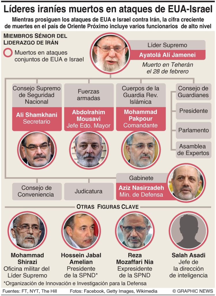 Mientras prosiguen los ataques de EUA e Israel contra Irán, la cifra crecientede muertes en el país de Oriente Próximo incluye varios funcionarios de alto nivel