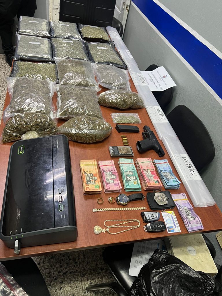 También en el operativo se ocuparon RD$234,850 pesos dominicanos, una jeepeta Mercedes Benz, modelo Gle 53 4Matic, una Marca Bmw, modelo X5, una balanza, una pistola calibre nueve milímetros, con su cargador y varias cápsulas, prendas y una máquina de empacar al vacío, entre otras evidencias.