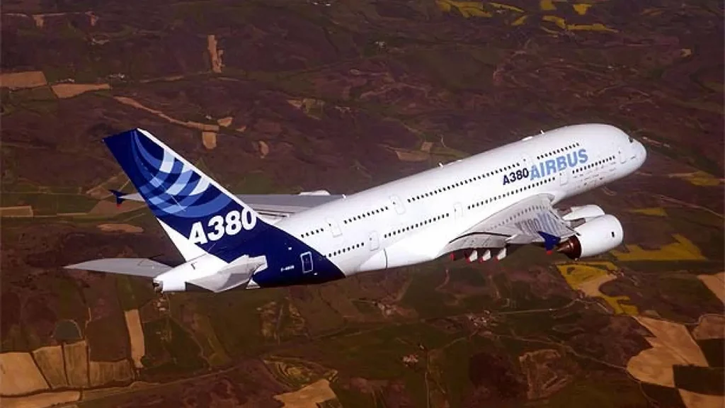 El A380 tiene dos cubiertas completas (72,7 metros), una envergadura de 79,8 metros y es el mayor avión comercial de la historia, con una capacidad de hasta 853 plazas. Cada uno de los A380 tiene un coste de casi 45 millones de dólares.
