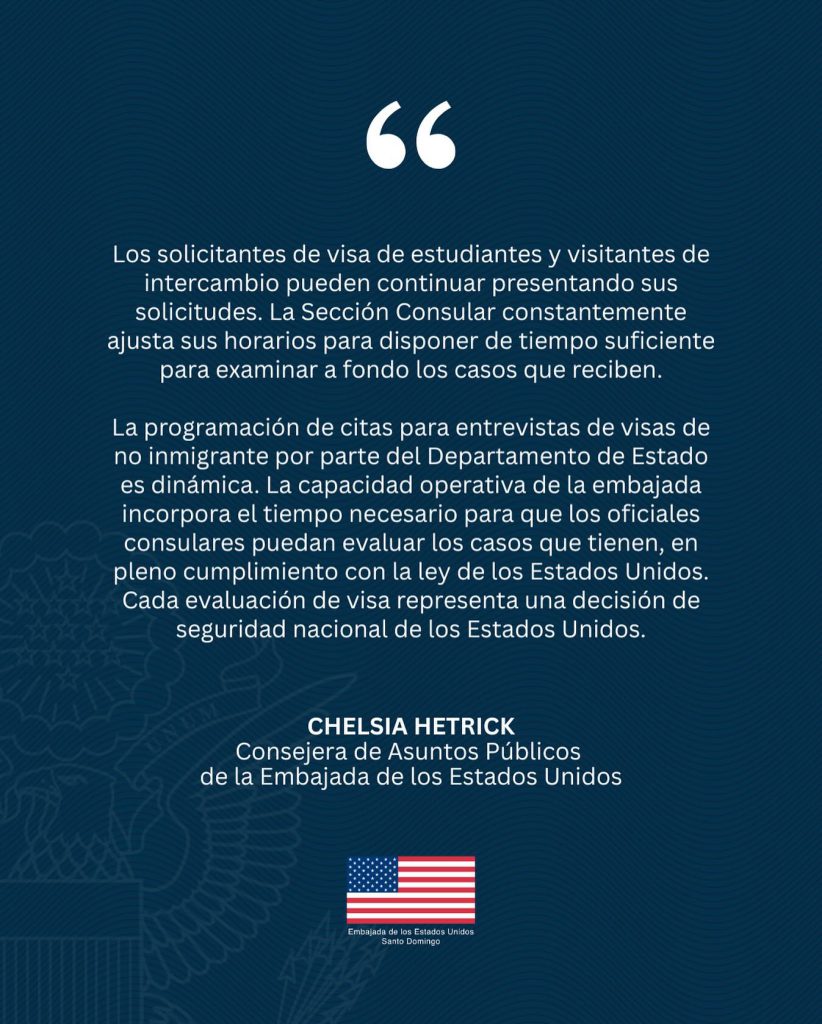 La Embajada de EE. UU. en República Dominicana confirma que las solicitudes de visa para estudiantes continúan sin cambios. Los dominicanos pueden seguir su proceso normalmente.