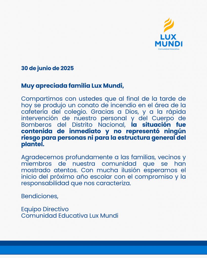 El Colegio Lux Mundi vivió momentos de tensión al final de la tarde de este lunes, cuando se registró un conato de incendio en el área de la cafetería del plantel.