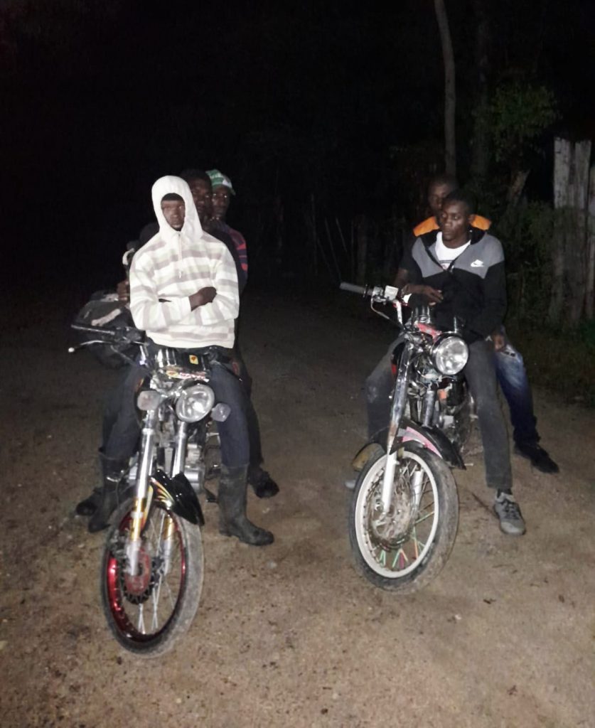 Dajabón.- Mediante patrullaje realizado por soldados del Ejército de Republica Dominicana destacados en el puesto de control de Santiago de la Cruz, en Dajabón, fueron interceptadas tres motocicletas con 12 nacionales haitianos en situación migratoria irregular.