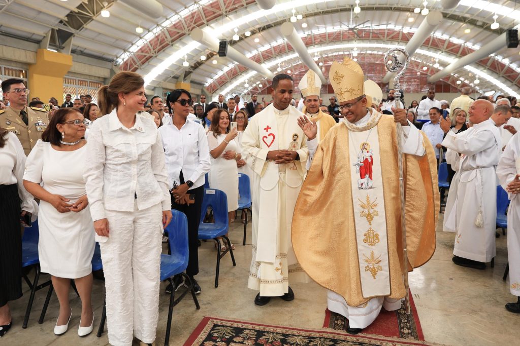 Santiago, RD.– Raquel Peña, vicepresidenta de la República, participó este sábado en la solemne ceremonia de ordenación de Monseñor Andrés Amauri Rosario Henríquez como nuevo Obispo Auxiliar de la Arquidiócesis de Santiago de los Caballeros, designado por el Papa León XIV.