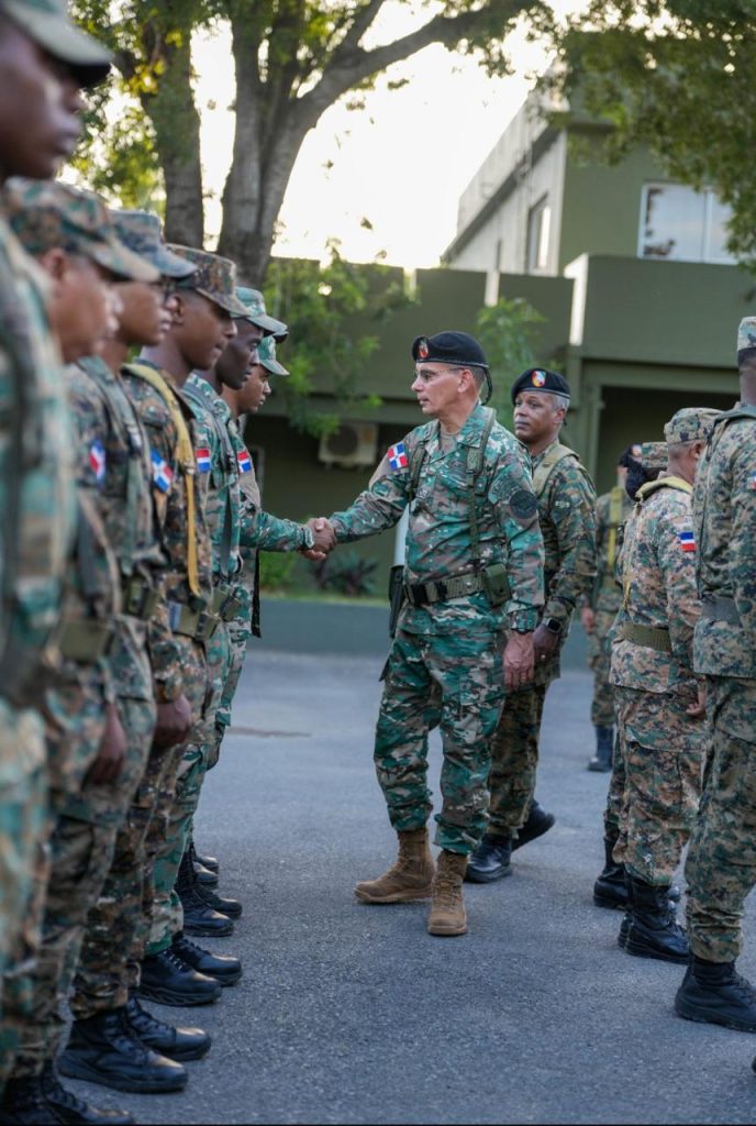 Posteriormente visitó la Fortaleza General de División Fernando Valerio, asiento de la Segunda Brigada de Infantería, donde coincidió con el Vicealmirante Luís Rafael Lee Ballester, ARD, para la revisión de los protocolos utilizados en los operativos que realiza la institución en la zona, en apoyo de la Dirección General de Migración.
