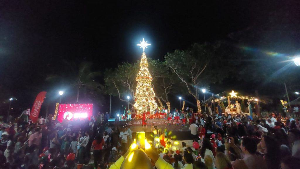 El encendido del árbol navideño es el punto de inicio de las actividades que tiene previstas el cabildo, marcando un hito al contar por primera vez este gran símbolo navideño en el litoral marino que ha sido recuperado durante la gestión de Carolina.
