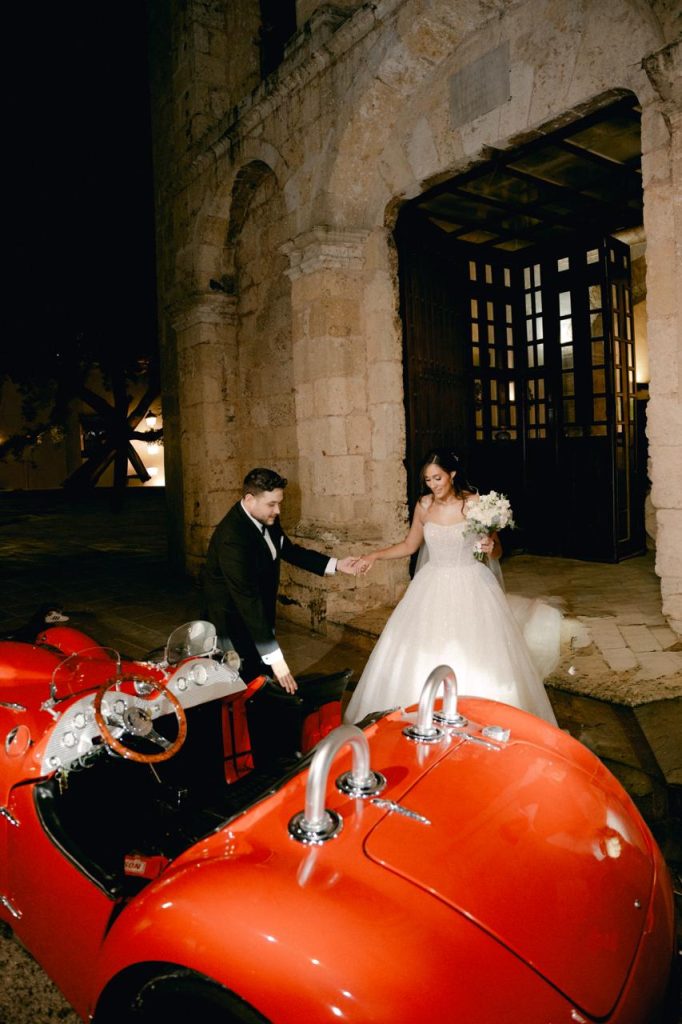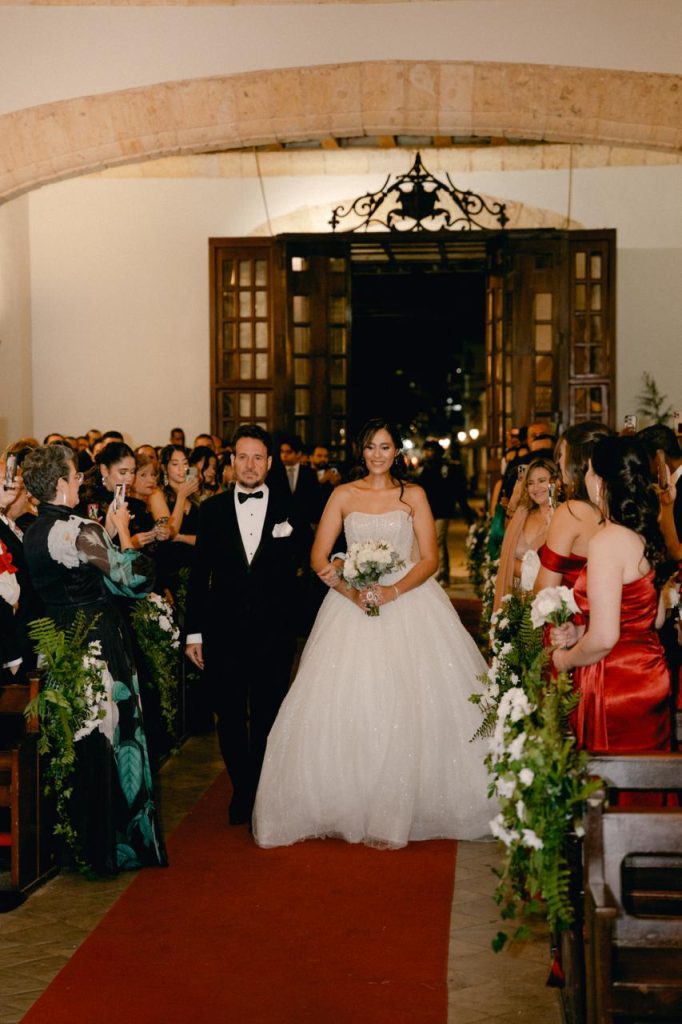 La novia fue entregada por su padre el doctor Nelson Aquino Báez mientras que el novio desfiló del brazo de su madre la odontóloga Bettina Núñez Melo. Los padrinos fueron Huascar Fernández y Jenny Núñez de Jáquez.