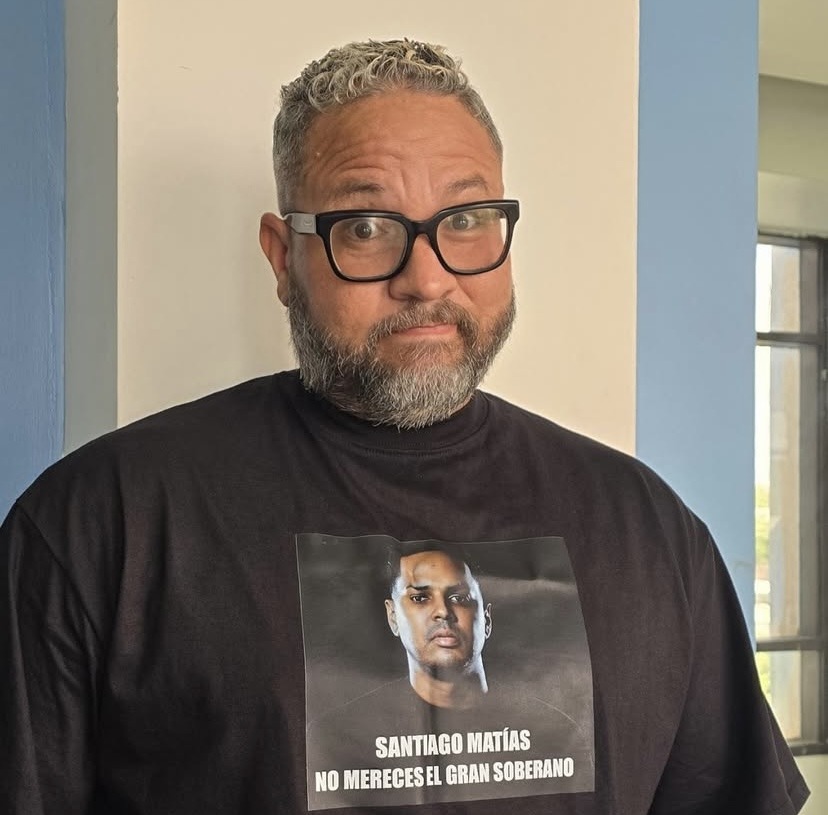 Santo Domingo.- El actor dominicano José Manuel Rodríguez, figuró este viernes en las redes sociales con una camiseta negra alusiva en apoyo a que no le otorguen el Gran Soberano al estratega empresario Santiago Matías debido a que “no lo merece”.