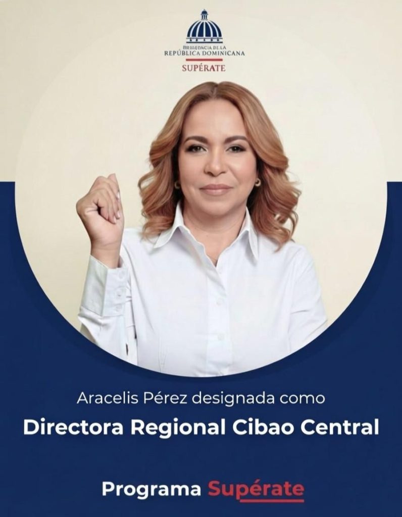 La señora Aracelis Pérez fue designada recientemente en la Regional Cibao Central del programa Supérate, con sede en La Vega, desde donde tendrá incidencia directa en las provincias La Vega, Monseñor Nouel y Sánchez Ramírez.