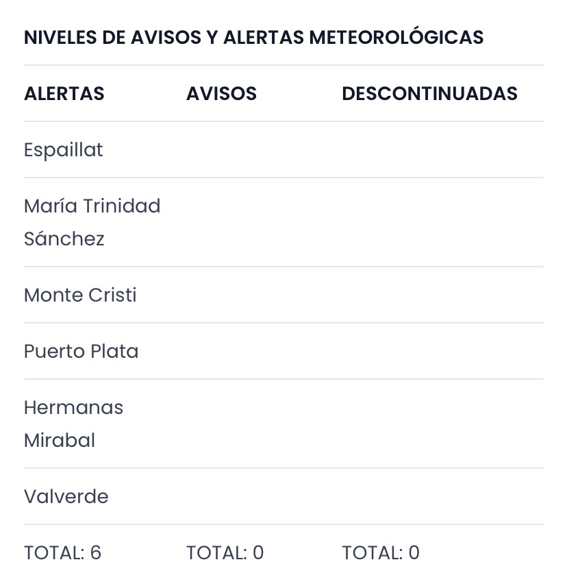 El Centro Nacional de Pronóstico del INDOMET mantiene el nivel de ALERTA meteorológica, ante el riesgo de inundaciones urbanas y crecidas repentinas de ríos, arroyos y cañadas, para las siguientes provincias.