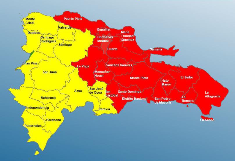 La Dirección del Centro de Operaciones de Emergencias (COE), declara en alerta 21 provincias, de ellas 12 en amarilla y nueve en ...Fiona podría convertirse en huracán la próxima semana
