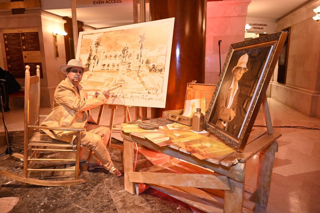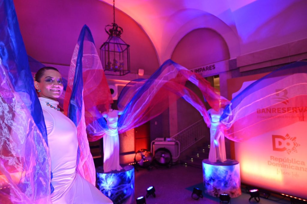 El ambiente del evento reforzó el carácter simbólico del homenaje: desde la explanada del Teatro Real iluminada con los colores de la bandera dominicana, hasta una escenografía interior inspirada en la piedra larimar. Las obras de Cestero acompañaron el recorrido de los invitados por las áreas del recinto, mientras la velada fue amenizada por la música del artista dominicano Manny Cruz, creando una experiencia cultural que celebró el arte, la identidad y el orgullo nacional.